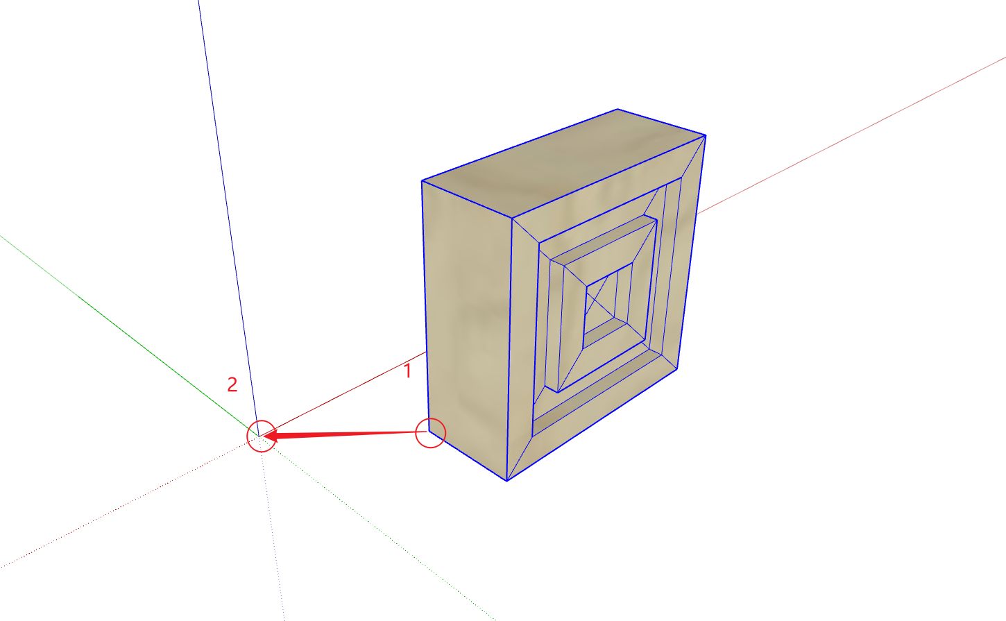 - Align the corner point of the column base model with the scene's coordinate origin. As shown below, move point 1 to coincide with point 2. If they're already aligned, no movement is needed