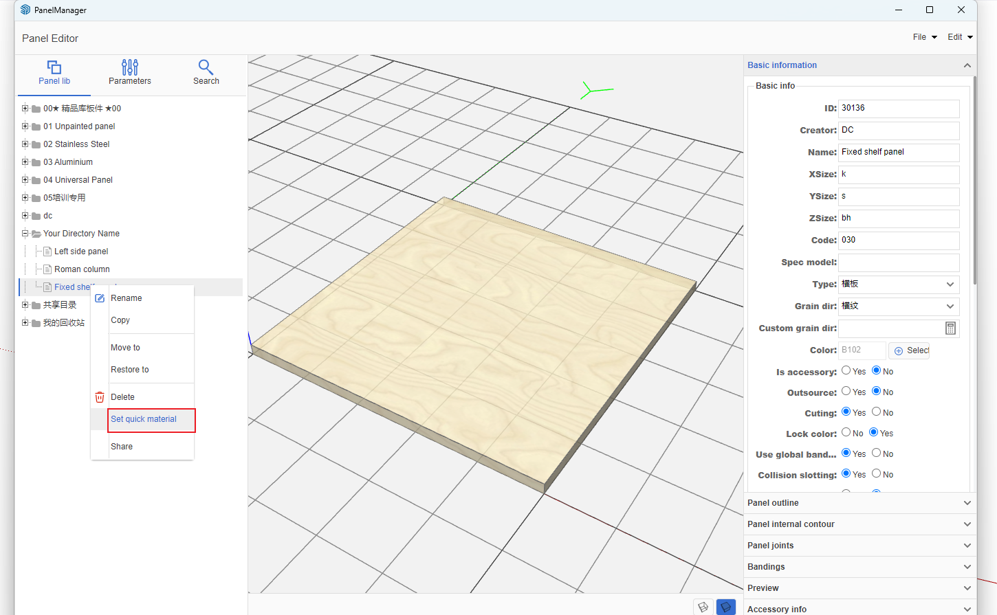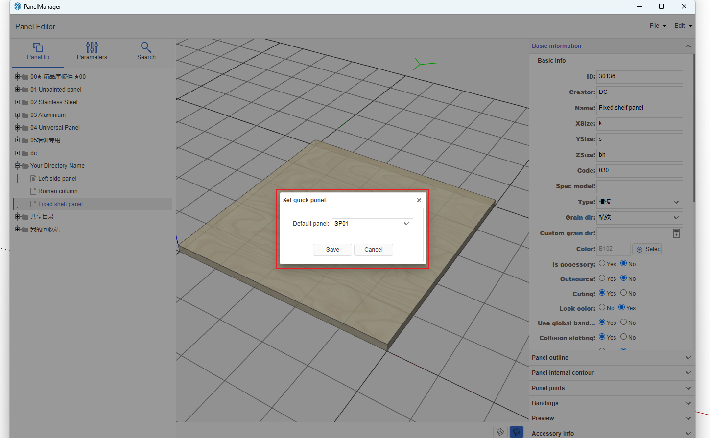 - Enter panel type name: zdy01 [Custom quick panels should be named in English or pinyin], then click Save