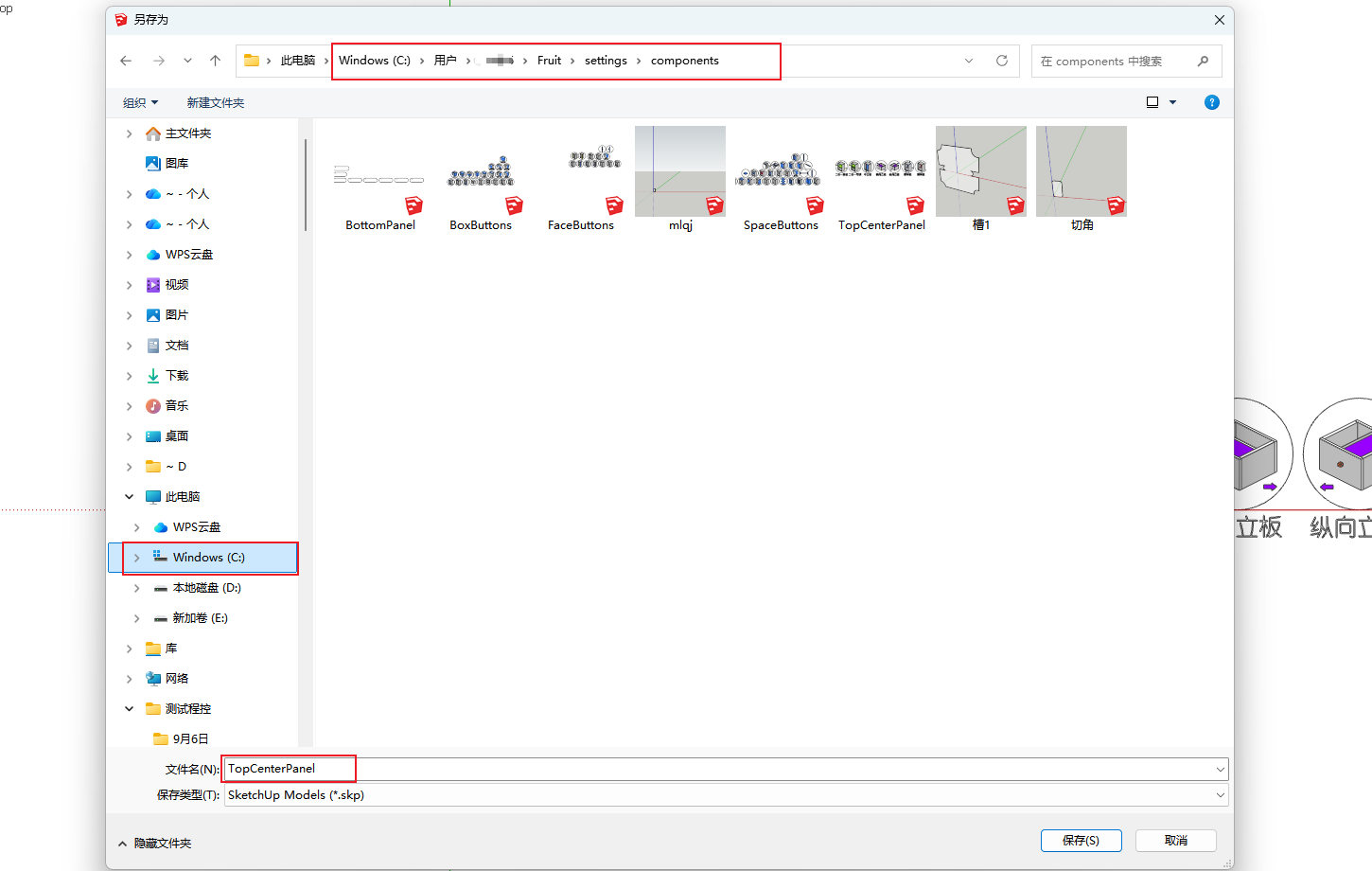- After modification, save as a file named: TopCenterPanel, with the path: 【C:\Users\YourComputerUsername\Fruit\settings\components\TopCenterPanel.skp】