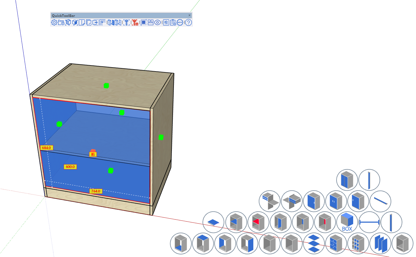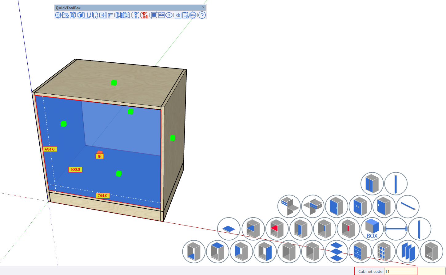 The Zhumu Furniture Design System allows quick insertion of door panels by picking internal spaces and using codes. These door panels automatically include hinge data for easy report statistics. Zhumu adds door panels through coded inputs, with codes following specific patterns for convenient usage.