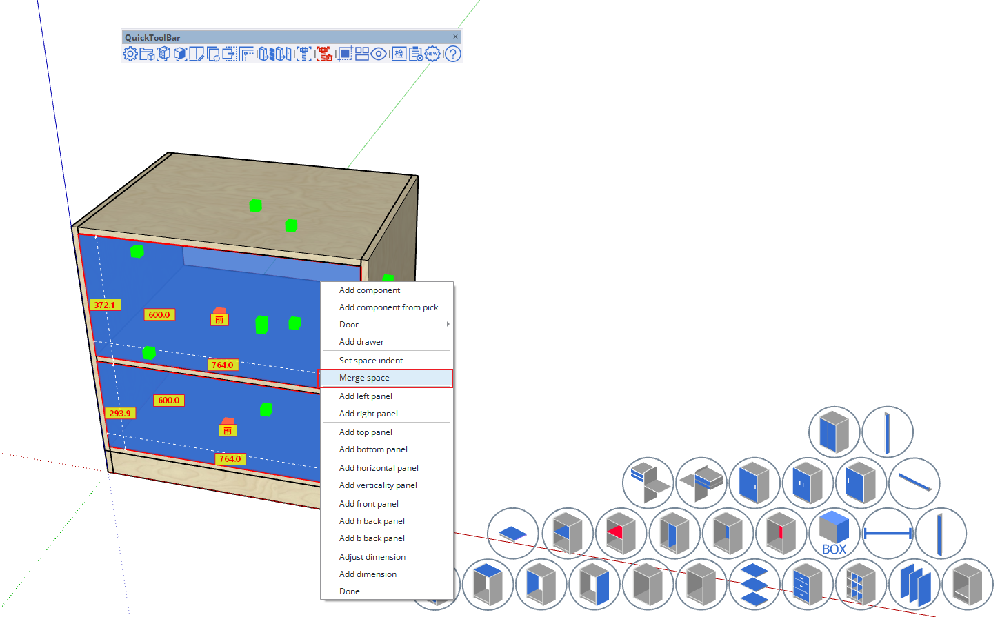 For multiple internal spaces requiring uniform door panel addition, after picking multiple internal spaces, right-click to merge internal spaces