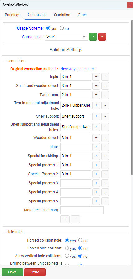 Under "My Connection Methods", there are 7 major types for different connection techniques (32mm system, dowel, etc.). Users can select and set these 7 types as their preferred connection methods. Note: When creating custom connection methods in the backend, users must select the corresponding type. If users haven't set connection methods yet, please complete this after finishing the next two tutorial chapters.