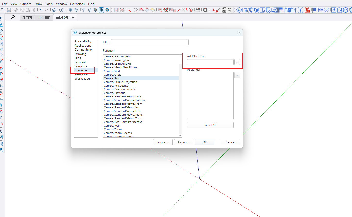 Select Shortcuts [Enter the first few characters of the function name in the filter to filter], choose different functions in the right list, click the buttons on your keyboard in the red input box, and click the + sign to add.