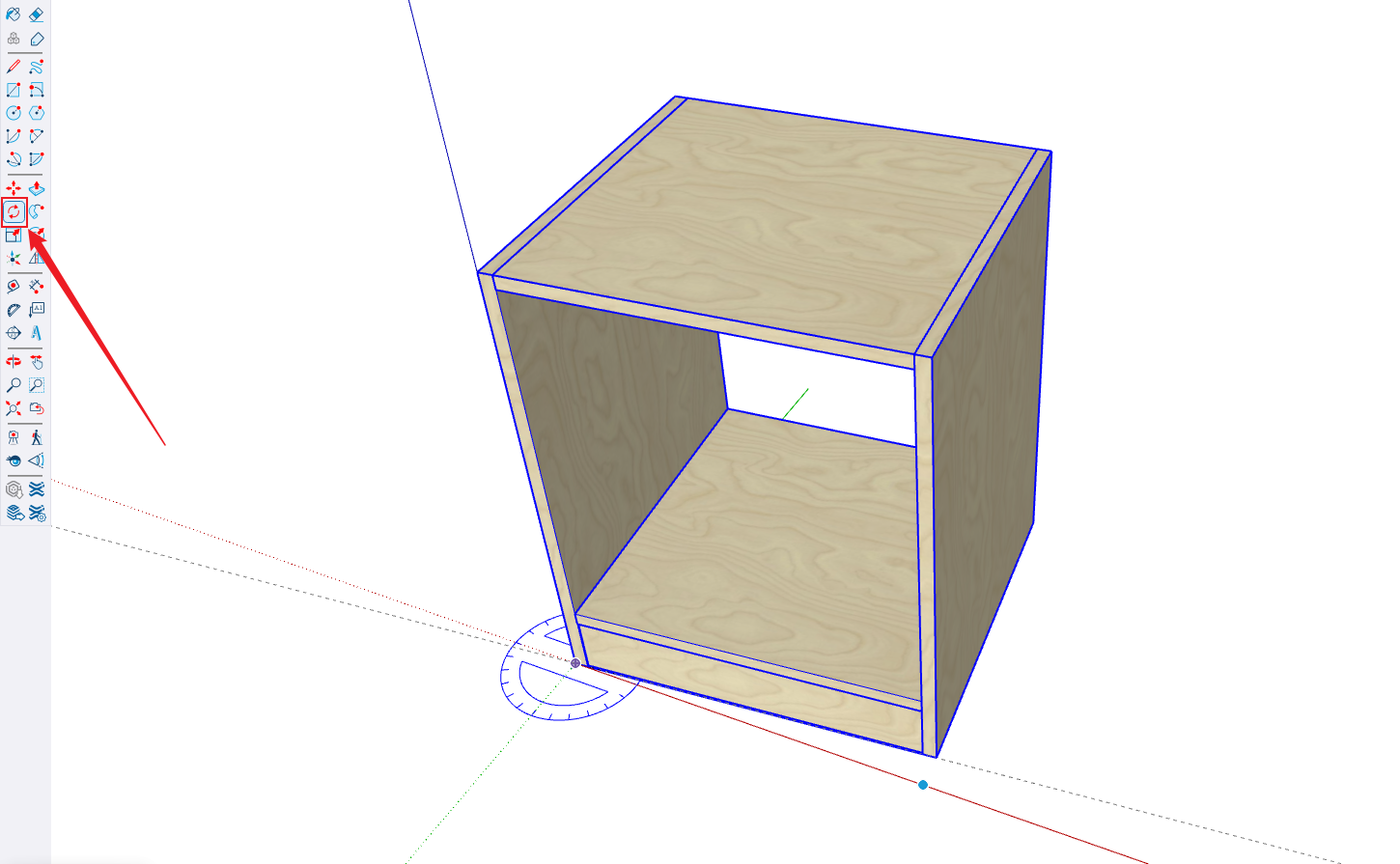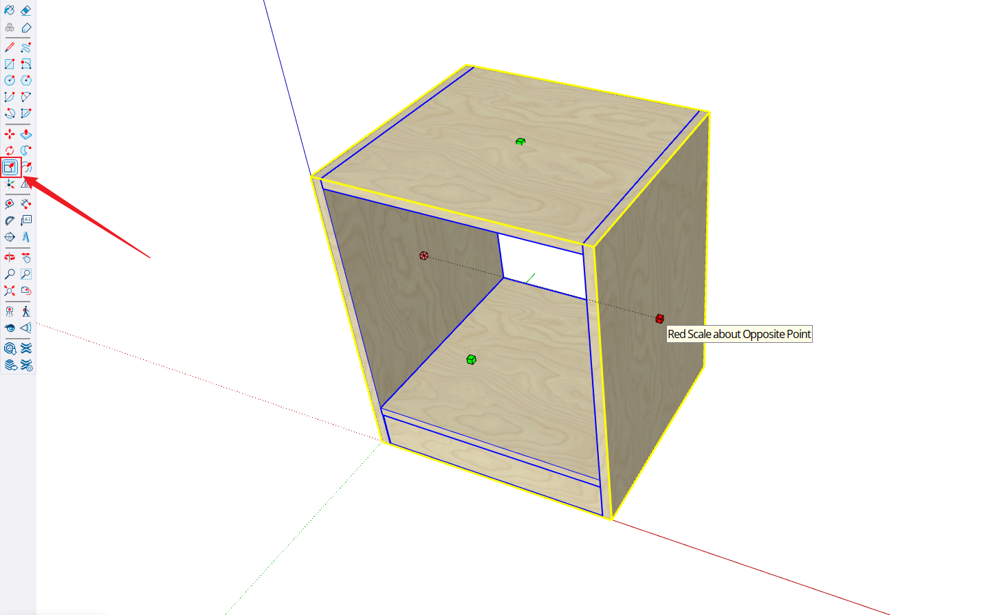 - Before scaling objects, first use the selection tool [Press Q or Spacebar; scaling tool is not recommended when designing cabinets] to select the object, then press S key to activate the scale tool. Specific operations: